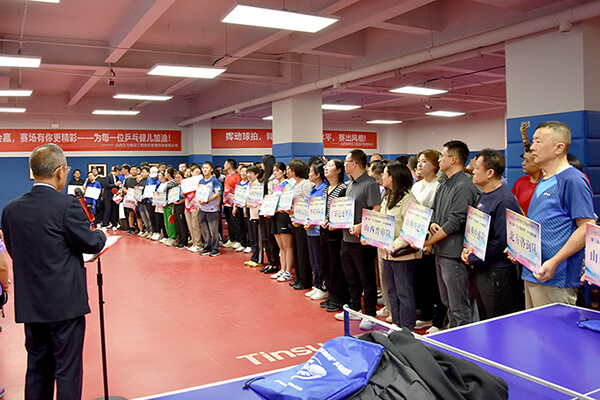 在运动员与裁判员代表依次宣誓后,省价协党支部书记李政书记宣布比赛正式开始并亲自挥拍开球。随着银球落地的清脆声响,为期一天半的激烈角逐,就此拉开序幕。