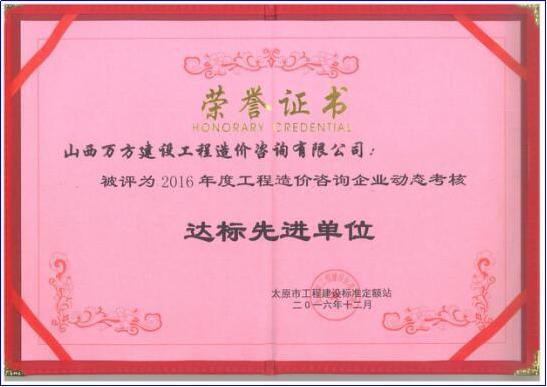 > 2016年度工程造价咨询企业动态考核达标先进单位