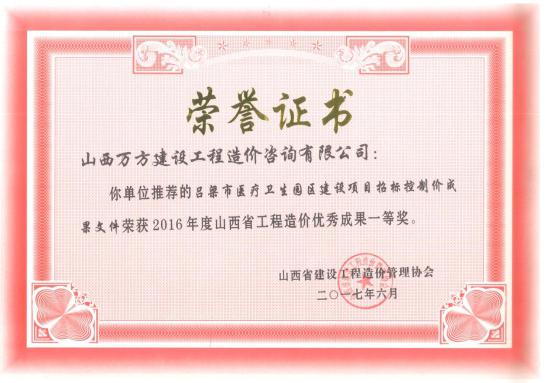 连国栋山西省工程建设造价管理先进个人荣誉证书