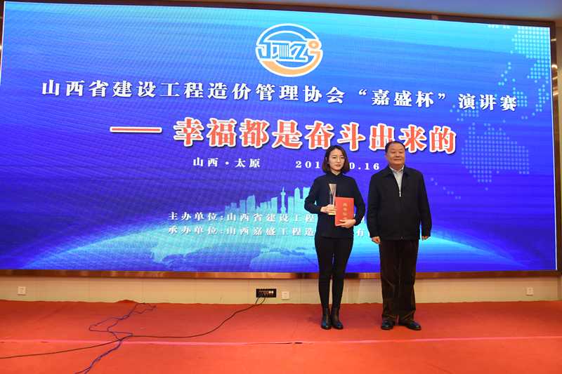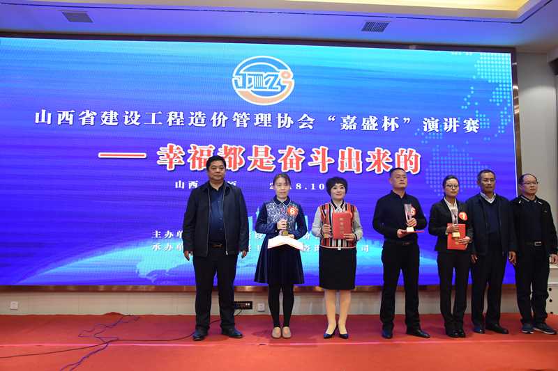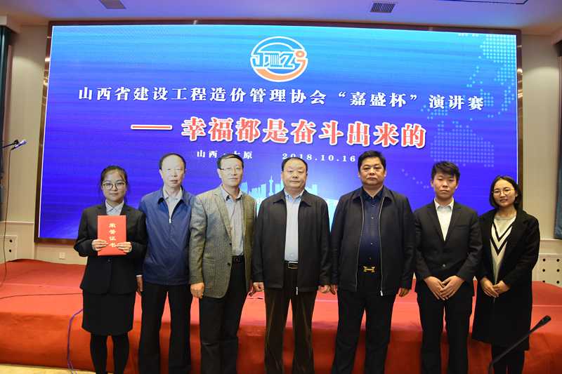 山西省建设工程造价管理协会“嘉盛杯”演讲比赛在此举办,比赛主题为“幸福是奋斗出来的”,这是本年度省价协主办的又一大活动,山西嘉盛工程造价咨询有限公司为承办单位。比赛评委由省价协会长赵建宏、几位副会长、协会领导担任,协会副会长总经理连国柱为2号评委。来自15家造价咨询企业的28位选手共同为大家奉献了一场精彩的表演。