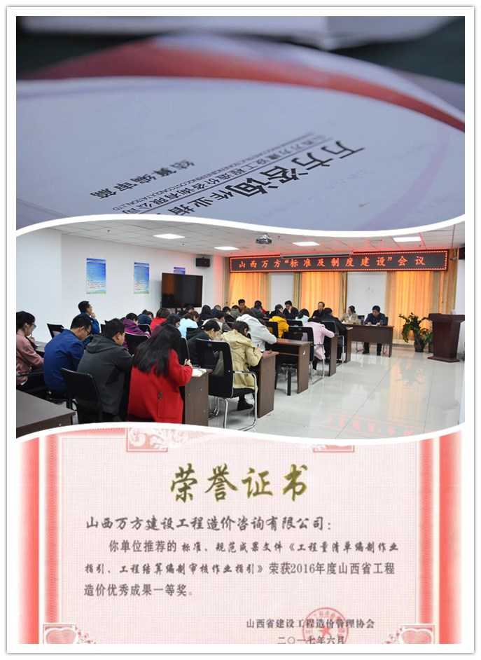 大力推进质量体系建设。万方坚持推行制度化、标准化建设,从2014年开始推行总监负责制,严格控制成果质量;2015年开始标准化建设,完成土建、安装等专业标准化清单的编制,规范了员工的作业成果;2016年完成《工程量清单及控制价编制工作指引》、《工程结算审核(审计)工作指引》。一系列不同类别业务的标准化质量管理体系的建立,使企业作业有规范、审核有重点、管理有标准。