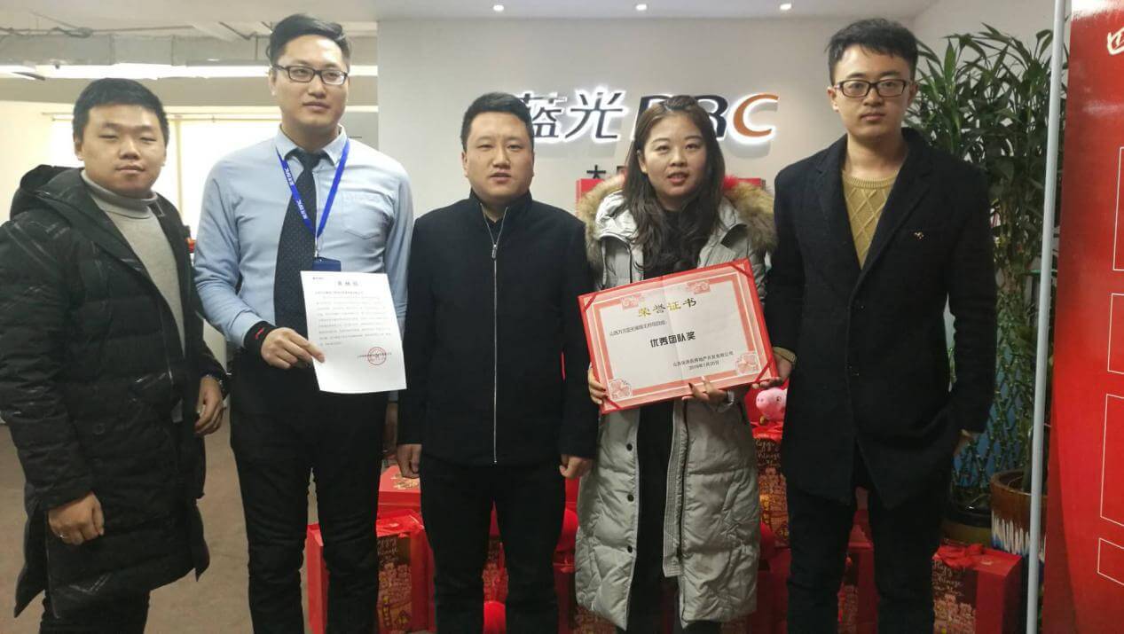 蓝光项目地处于玉泉山森林公园附近,交通不便,且年初更换总包单位,4、5月份经历了示范区抢工,11月份总包二次重计量,在这些过程当中项目部成员克服重重困难,完成了甲方规定的工作,得到甲方的一致好评,甲方授予“优秀团队奖”荣誉称号。