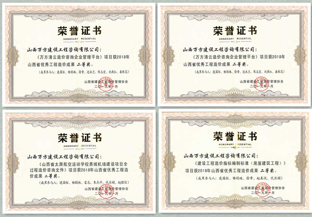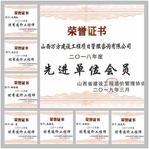 其中,我公司获省价协2018年度先进单位会员、连国柱等六名优秀造价工程师、原晓恺等两名先进个人,另有优秀造价成果一等奖五项、二等奖四项。