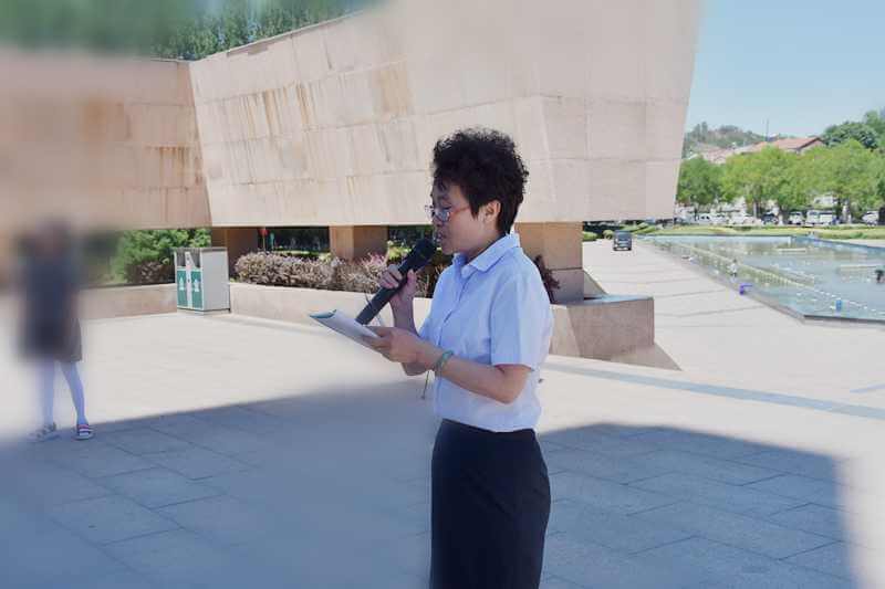 八路军纪念碑前,党支部书记畅聪姝重申本次活动的目的,缅怀先烈,继承先烈遗志,弘扬革命精神,为把新中国建设为世界强国而共同努力。之后畅书记、党支部宣传委员蒋国红组织大家合唱红歌,《没有共产党就没有新中国》、《团结就是力量》,澎湃激昂的歌声令人热血沸腾。