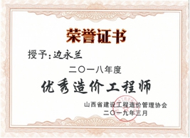 2019年3月,山西万方董事长边永兰获评为山西省建设工程造价管理协会2018年度优秀造价工程师。