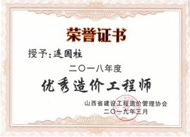 2019年3月,山西万方总经理连国柱获评为山西省建设工程造价管理协会2018年度优秀造价工程师。