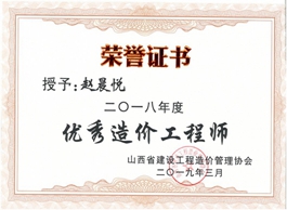 2019年3月,山西万方员工赵晨悦获评为山西省建设工程造价管理协会2018年度优秀造价工程师。