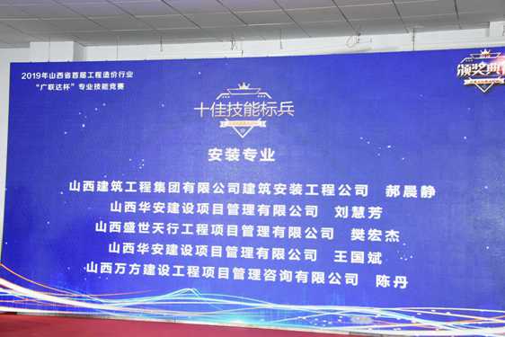 2019年10月,山西万方员工陈丹获山西省建设工程造价管理协会“广联达杯”造价技能大赛安装个人第五名。