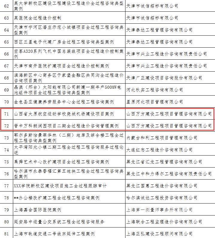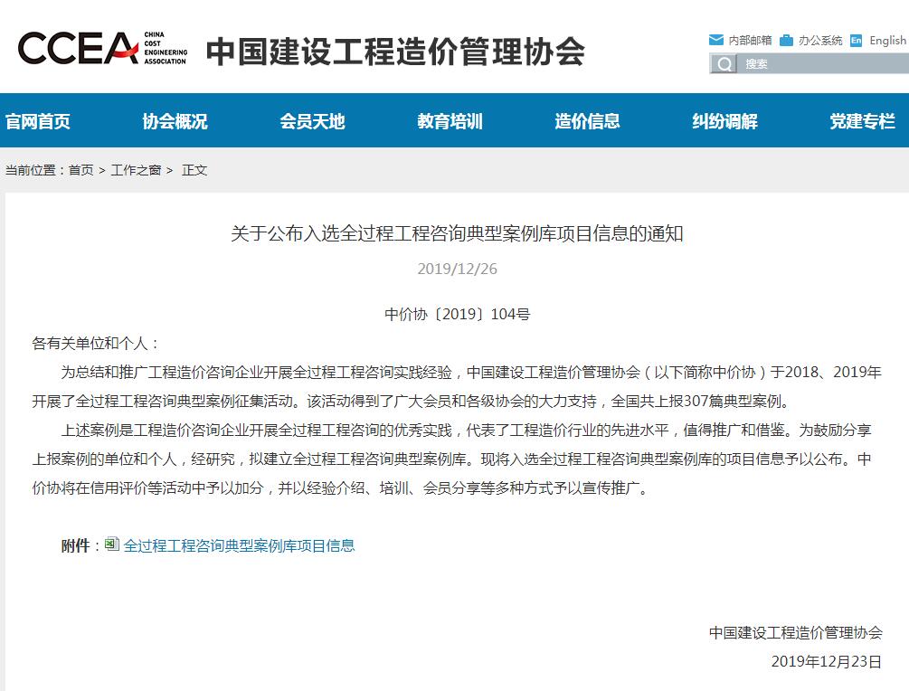 12月26日,中价协公布了入选全过程工程咨询典型案例库名单,我公司“太原航空运动学校尧城机场建设项目案例、晋中万科朗润园项目二期全过程造价咨询管理案例”两项目入选。