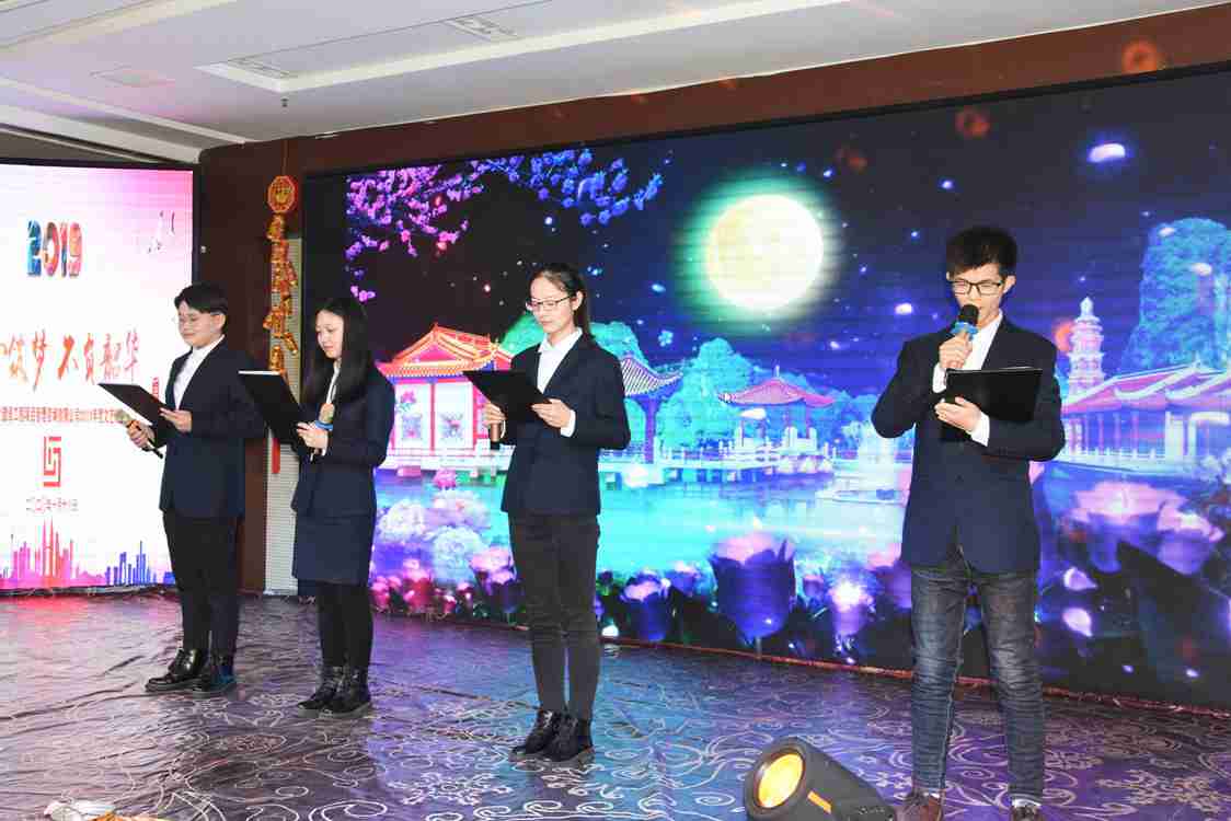 晚会开始后,连总简短致辞,代表公司给全体员工送上新年祝福。随后,各部门精心准备的19个节目依次上演,期间穿插了幸运抽奖、派发礼品环节,员工们欢聚一堂,喜迎新春。