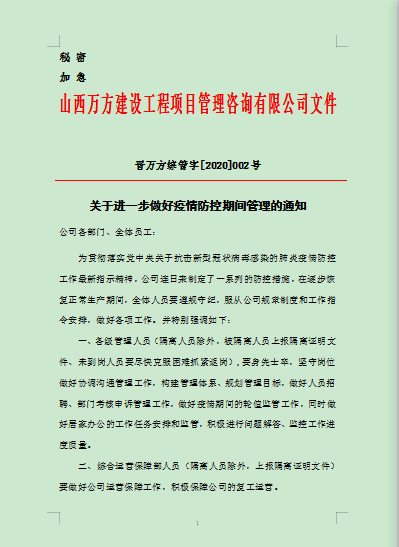 疫情期间,公司出台一系列相关规定,稳定人心,抗击疫情。