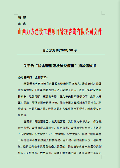 (为抗击冠状病毒疫情捐款的倡议书)