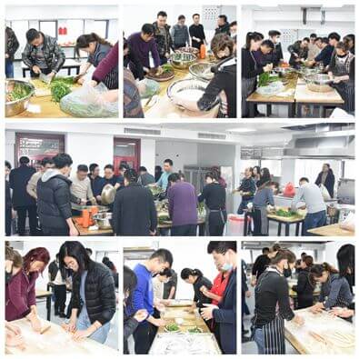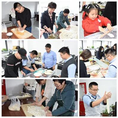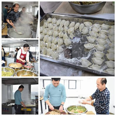 上午十时许,各包饺子小组分别从餐厅领取面团、菜馅等,各组开始摆好桌椅、工具。大家各显神通,纷纷投入到其乐融融的包饺子活动中。活动过程中,员工们热情高涨,组员们积极参与,大家围在一起,和面、擀皮、包饺子,欢声笑语不断,大家齐心协力、一排排别具个性的饺子很快就摆满了一个个托盘。