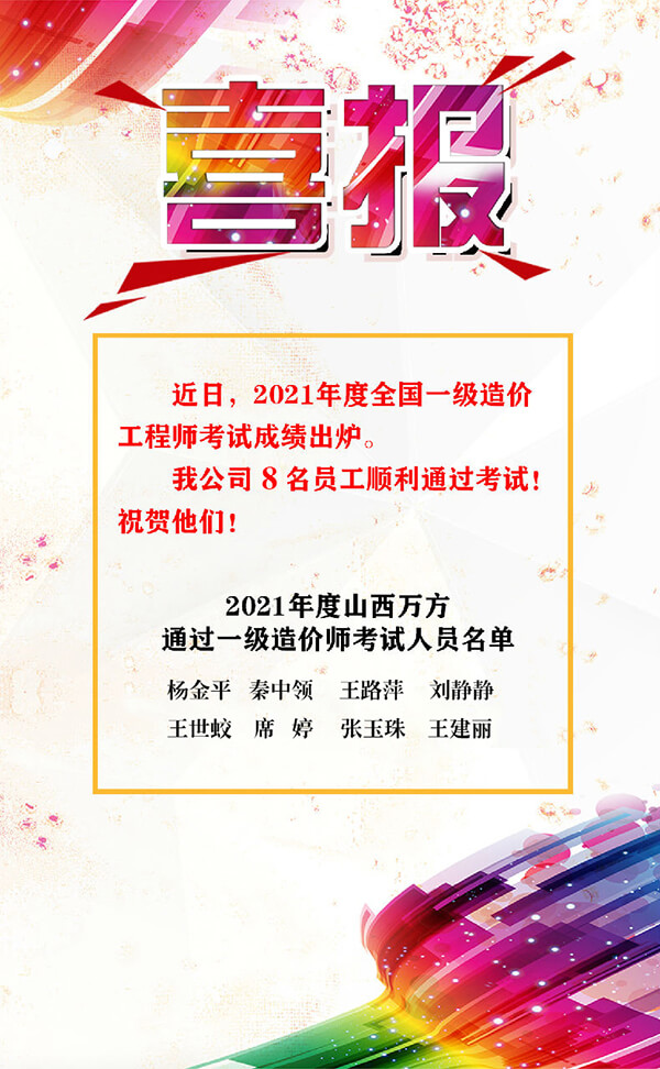 热烈庆祝我公司杨金平等8名员工顺利通过一级造价师考试