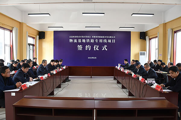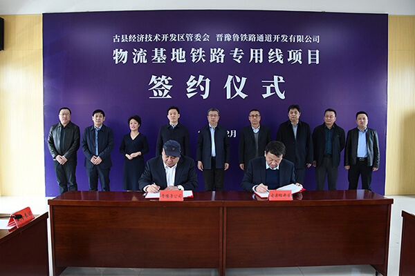 2月28日,古县经济技术开发区物流基地铁路专用线项目的战略合作框架协议签约仪式在古县顺利举行。县委副书记、政府代县长刘泳出席并讲话,县领导贾晓文、杨晋栋、李晶、马玉林、孟繁盛参加。晋豫鲁铁路通道开发有限公司董事长、总经理王廷俊,北京横贯线实业发展常务副总经理倪海涛。公司总经理连国柱、副总经理武鹏龙、法务咨询师权旺作为邀约嘉宾参加了本次仪式。