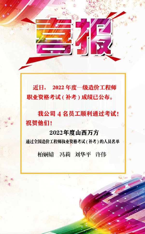 热烈祝贺我公司柏娴婧、刘华平等四位同志通过全国造价工程师执业资格考试