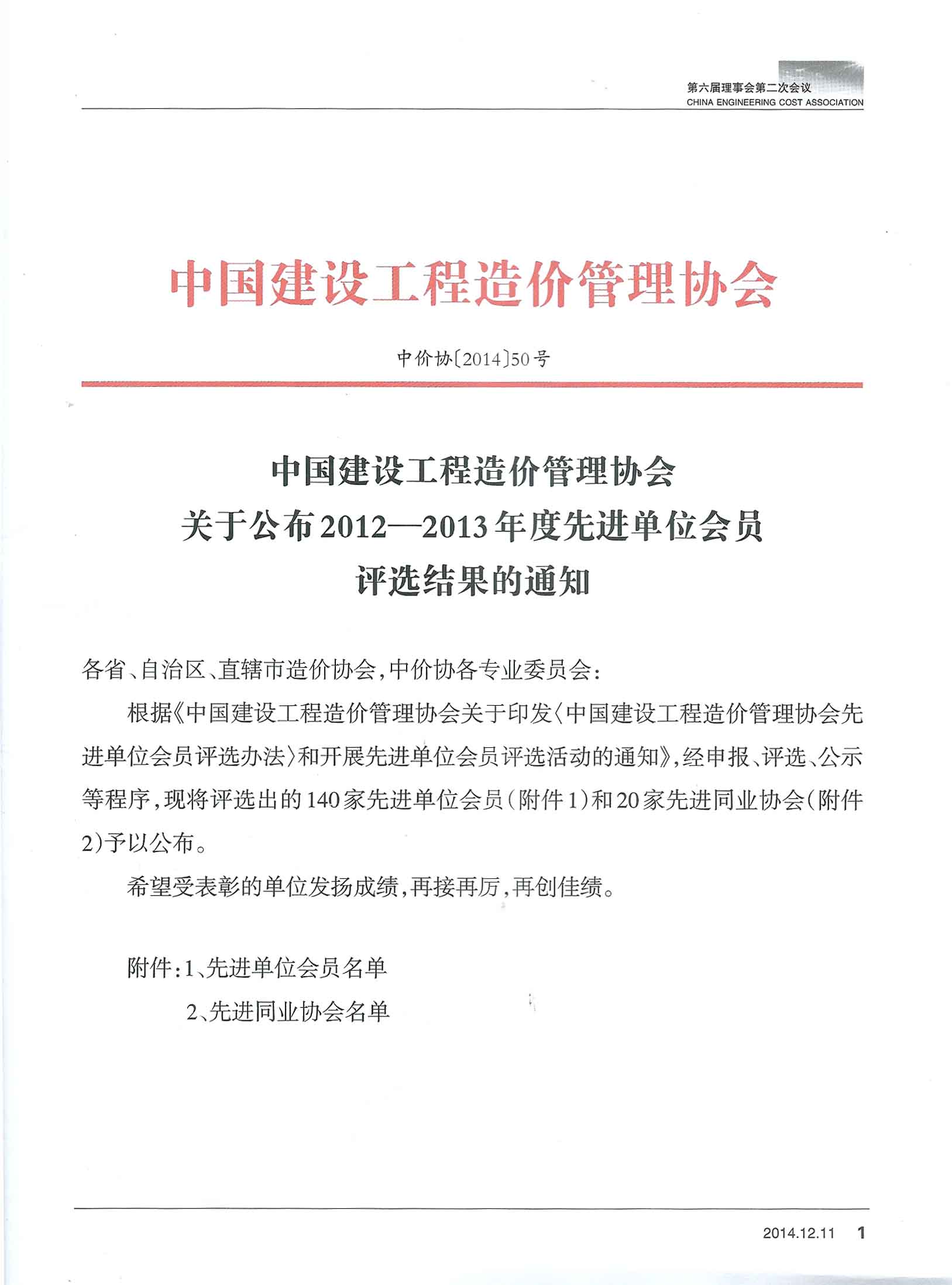 > 热烈祝贺公司获得中价协2012-2013年度先进造价咨询企业荣誉