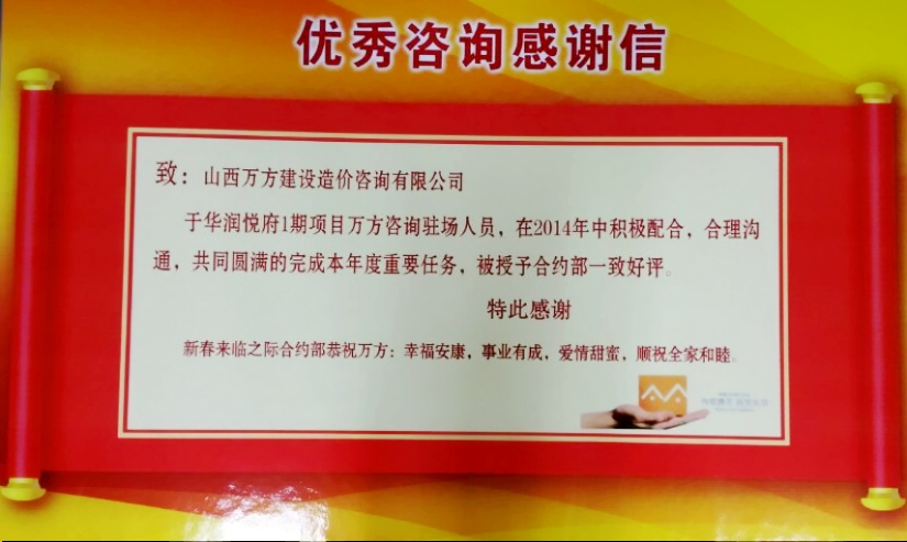 > 华润悦府业主感谢信