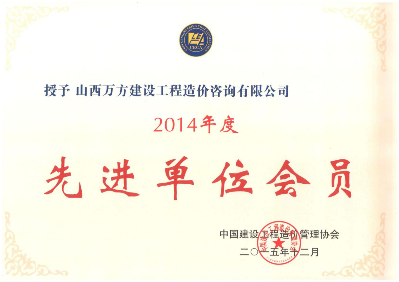 > 中价协2014年度先进单位会员