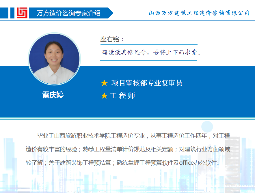 > 万方造价咨询专家介绍——雷庆婷