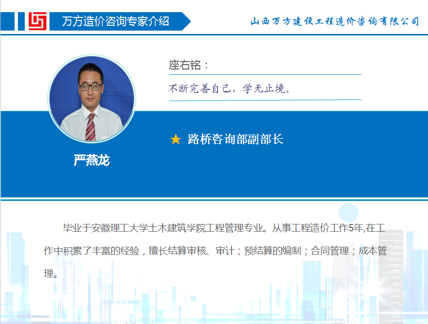> 万方造价咨询专家介绍——严燕龙