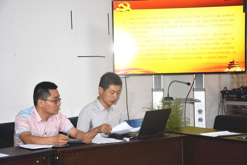 大会在庄严的国际歌歌声中拉开了序幕。随后由刘并生同志发表了纪念中国共产党成立96周年的讲话,他提到,要牢记党的光辉历史,自觉成为共产主义远大理想和中国特色社会主义共同理想的坚定信仰者和忠实实践者;要认真学习贯彻党章党规和习近平总书记的系列讲话,开展严肃认真的党内政治生活;要积极推进“两学一做”学习教育常态化制度化,做政治合格、纪律合格、品德合格、发挥作用合格的党员,以优异的成绩迎接党的十九大胜利召开。接着由赵晨悦同志带领全体党员重温入党誓词,党员们群情激昂,回味着入党时的热情。接下来,蒋国红同志为大家上了一堂党课(党员必须牢记的100条党规党纪),该同志制作的党课PPT生动形象,受到与会党员的好评。