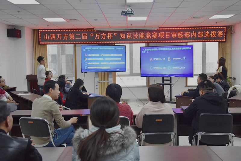经过技术中心的筹备,综合运营部的协调,2017年11月27日下午,山西万方第二届“万方杯”知识技能竞赛项目审核部内部选拔赛在公司会议室拉开帷幕。举办“万方杯”,是为提升业务部门员工的知识业务水平,营造一个良好的学习氛围。