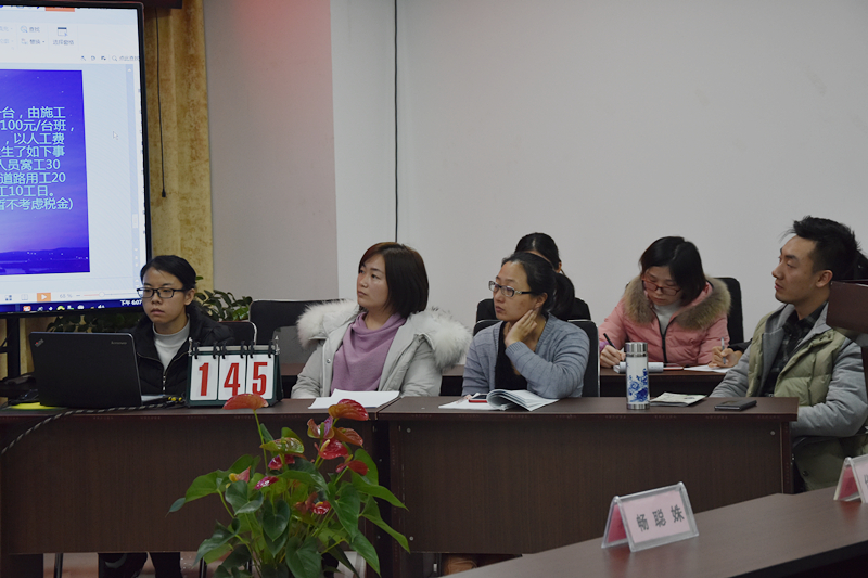 此轮竞赛的每场比赛由对抗的两组分别出题,题目要求为,可涵盖各相关专业,计算规则类占百分之二十、合同法务类占百分之五十、编制组价类占百分之三十。今日的对阵双方为一组与二组,组长分别由路桥咨询部的赵世鑫和项目管理部的邵毅楠担任。建模算量部的刘玉坤担任主持人,公司副总经理原晓恺、技术中心初级技术总监贾国蓝、项目管理部部长武鹏龙三位领导担任评委。