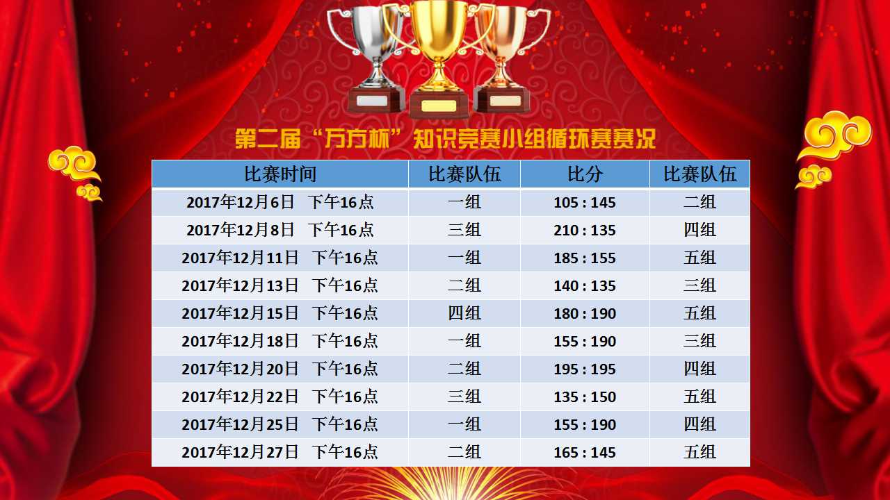自12月6日的小组循环赛开始,公司第二届万方杯本阶段的竞赛共进行了十场。