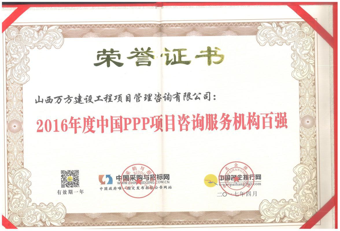 > 2016年度中国PPP项目咨询服务机构百强